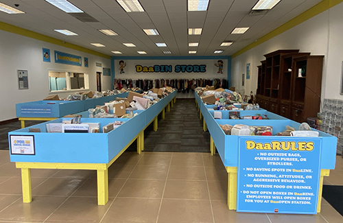 At DaaBIN STORE, we’re more than just a discount retail destination — we’re a family-driven business built on community and inclusion. The name DaaBIN comes from our family — Delaney, Andy, Amanda, and Beau — with the “IN” standing for inclusive, reflecting our commitment to welcoming everyone. The inspiration behind the brand comes from real family experiences, including creating meaningful opportunities for people of all abilities and partnering with organizations to support job training and community inclusion.